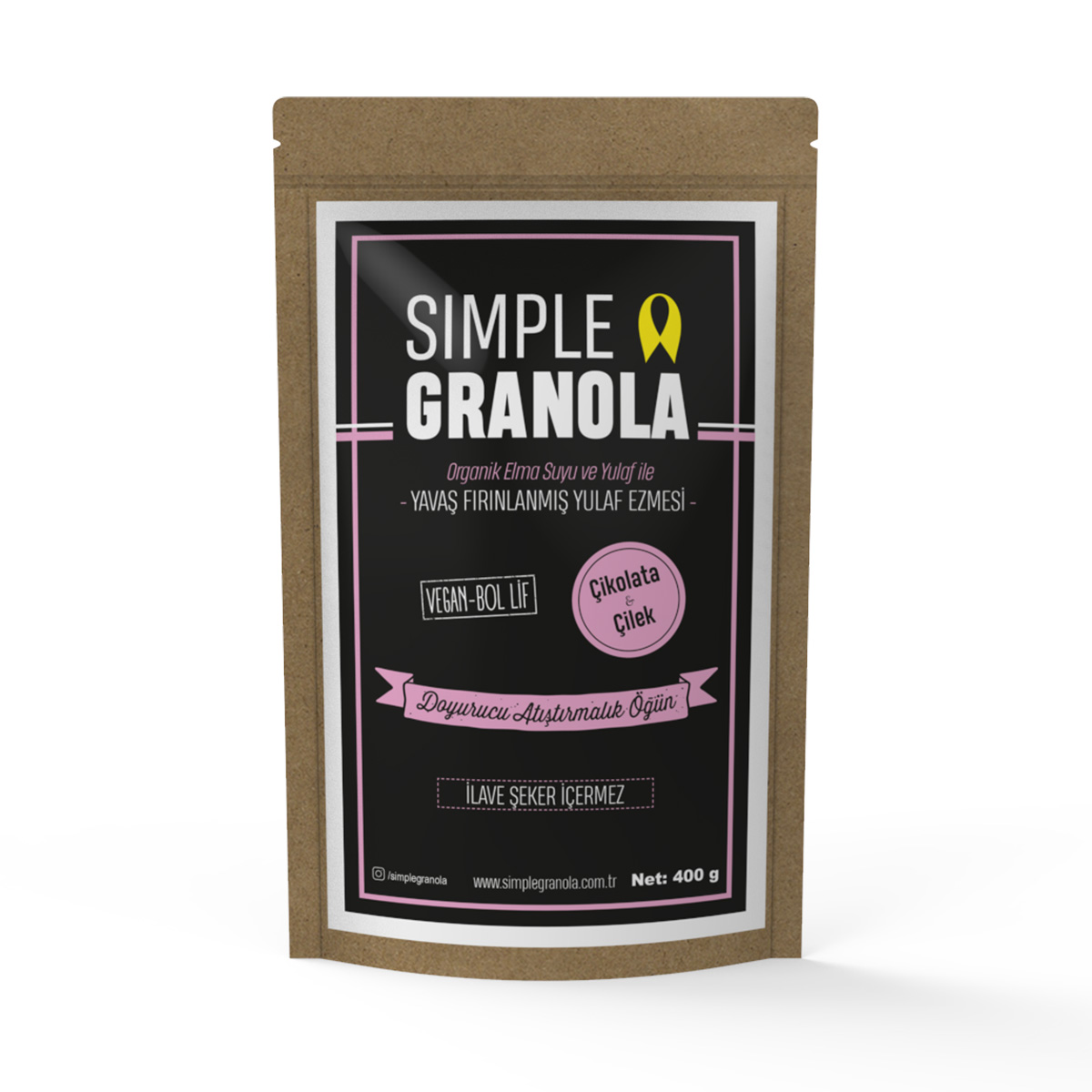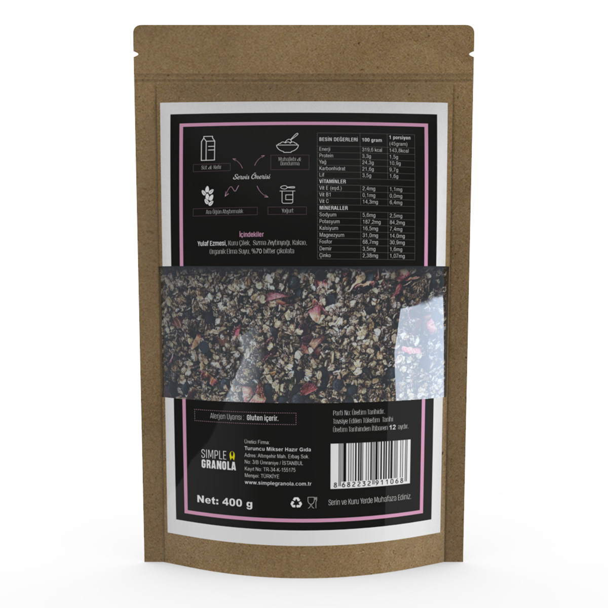 Organik Yulaf Ezmesi ve Organik Elma Suyu ile Besin Değerlerini Kaybetmesin Diye Yavaş Fırınlanmış, Vegan Çikolata&Çilekli Granola